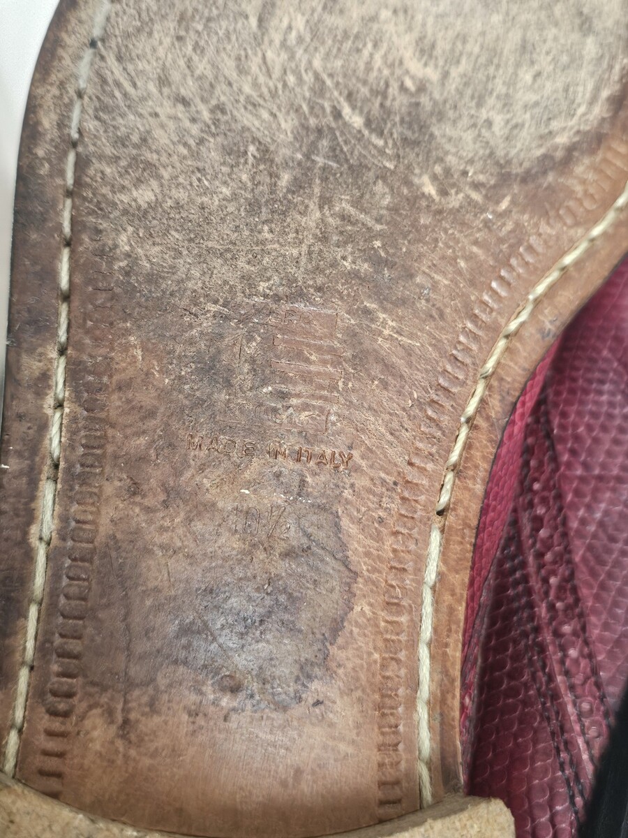 Condition pre loved. Item shows wear on soles. Will benefit from adding protection on the soles, talk to your cobbler. Otherwise too grain is solid, no breaks on skin. Not dried.