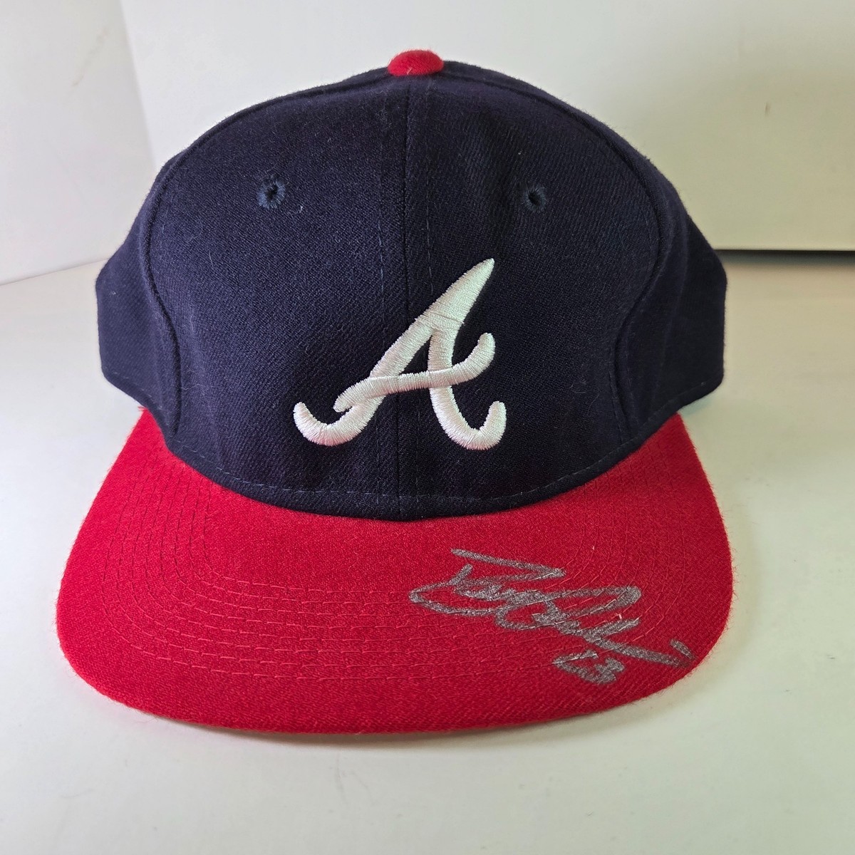 Vintage Atlanta Braves fitted wool hat by Sports Specialties, size 7. Signed by David Justice in silver marker on the brim. Includes JSA authentication sticker and matching COA card (cert # C88732). This genuine MLB merchandise cap is made of 100% wool and features the classic Braves ?A? logo on the front and MLB logo on the back. Signature is clear and bold. Hat is in very good pre-owned condition with some minor lint present from storage. A fantastic piece for any Braves fan or baseball memorabilia collector. Details: Size: 7 (fitted) Material: 100% Wool Brand: Sports Specialties (Made in Korea) Authentication: JSA COA Player: David Justice Team: Atlanta Braves Era: Vintage (likely 1990s) Condition: Gently used, well kept