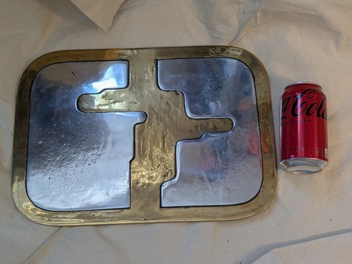- David Marshall Disenos Brutalist Brass Aluminum Tray Platter Spain 15 x 11 Inch
