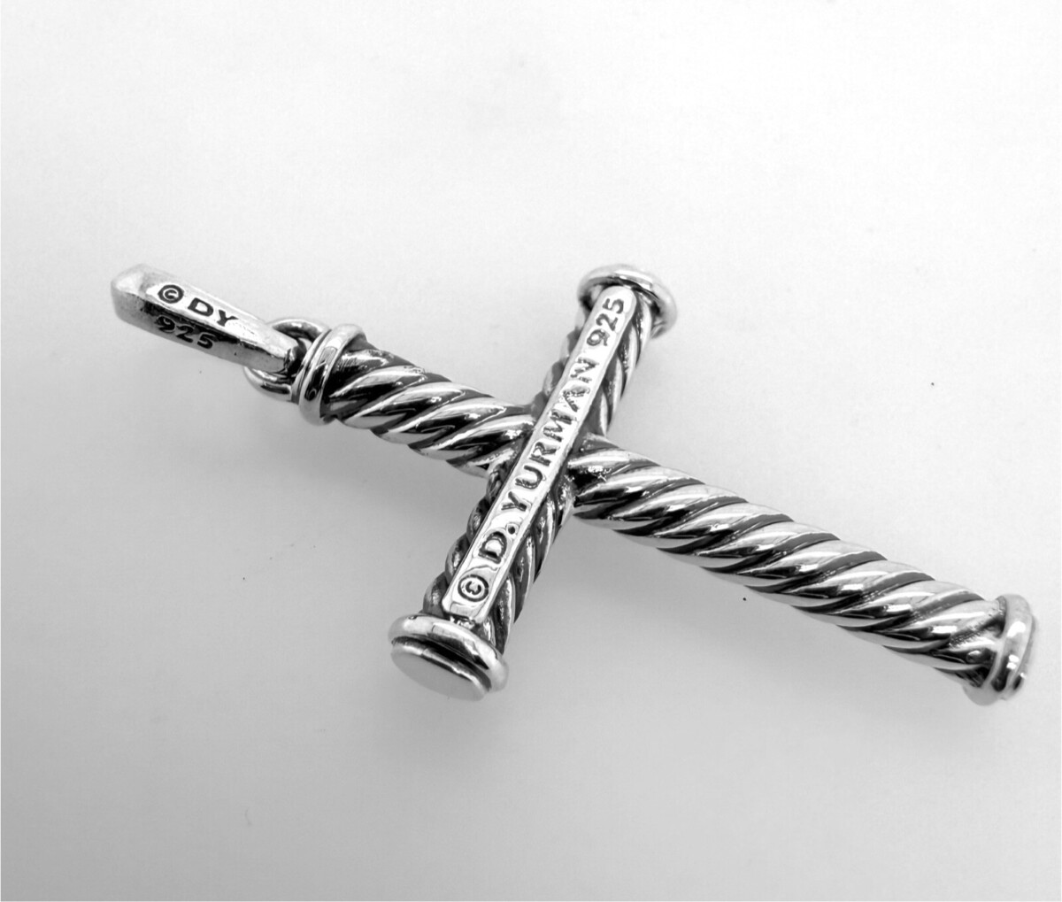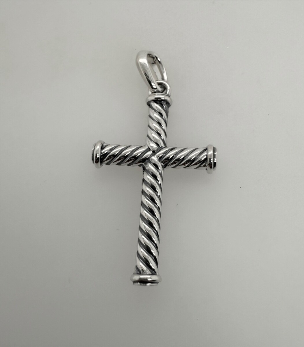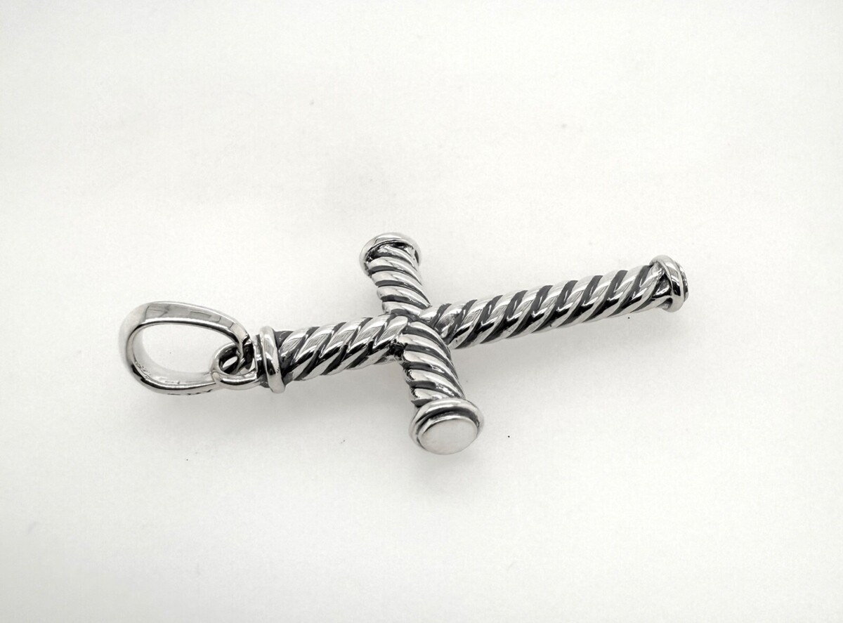 - David Yurman .925 Sterling Silver Cable Plain Cross Pendant Men