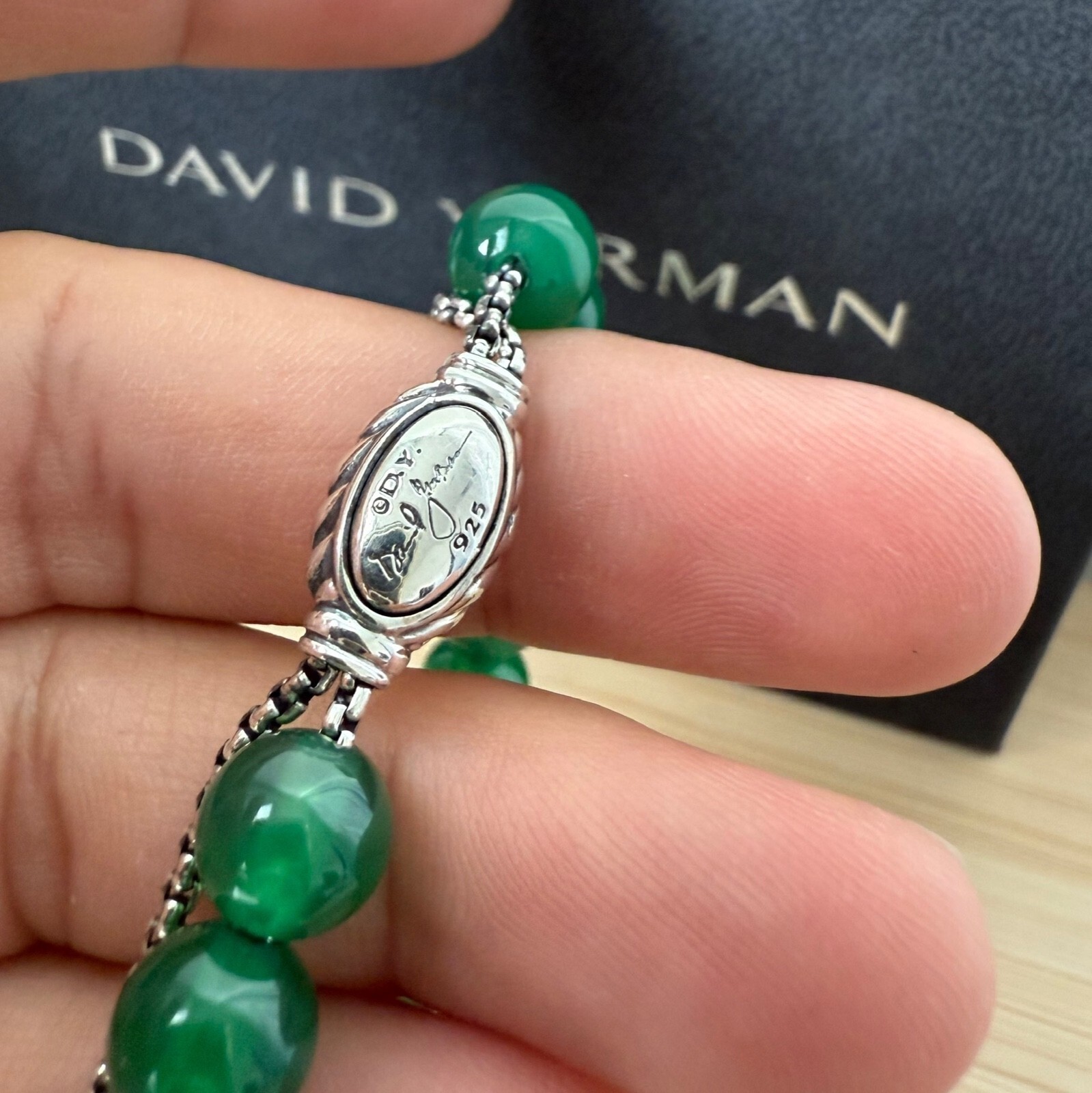 - David Yurman .925 Sterling Silver Spiritual Bead's Green Onyx Ball Bracelet