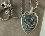 - David Yurman .925 Sterling Silver Waves Shield Pendant & Box Chain 20"inch