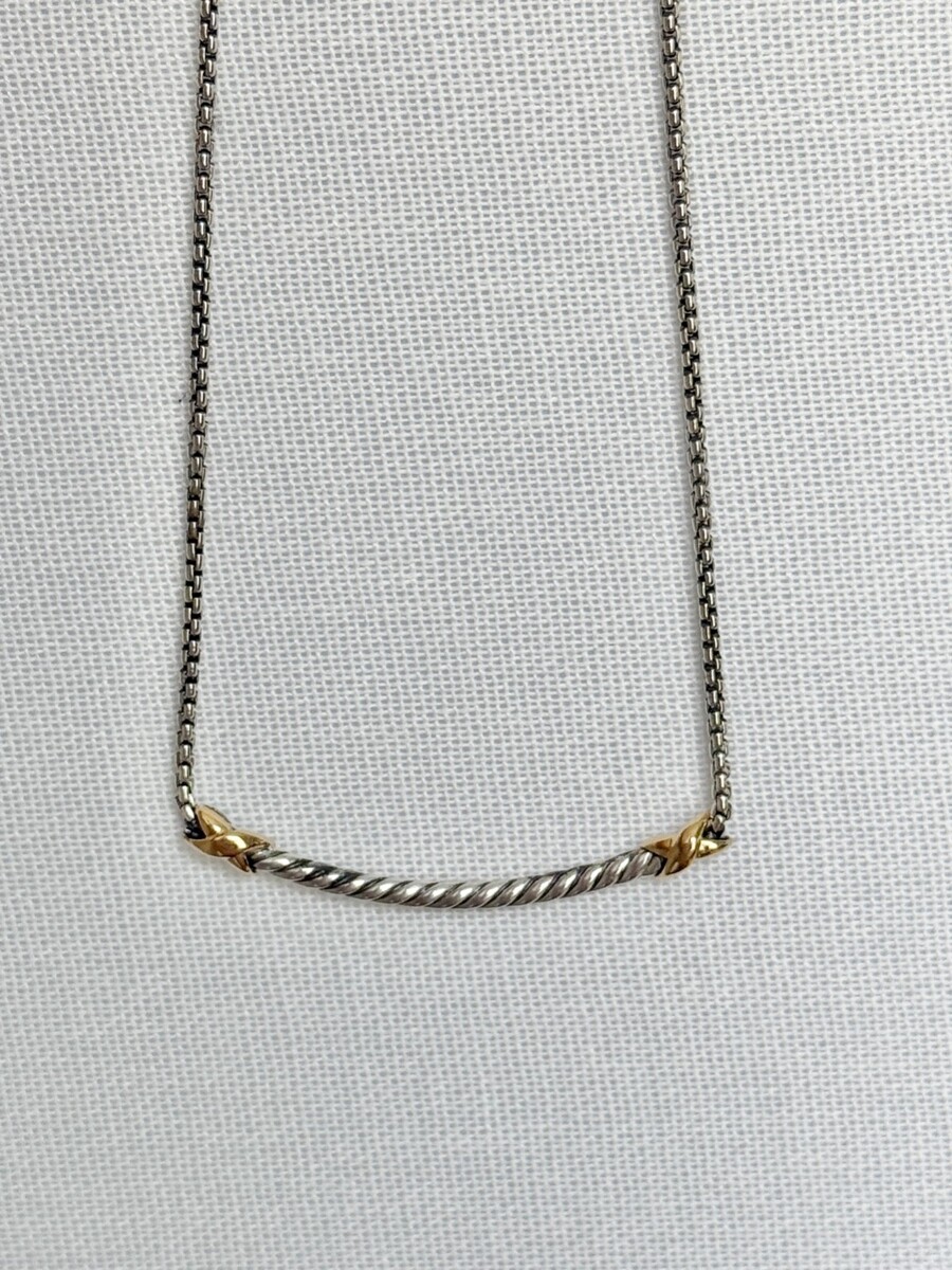 - David Yurman Station Double X Necklace 18K/750 Gold & .925 Sterling Silver W