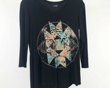 Daytrip 3/4 Sleeve Embellished Abstract Tiger Top Black Women's Small