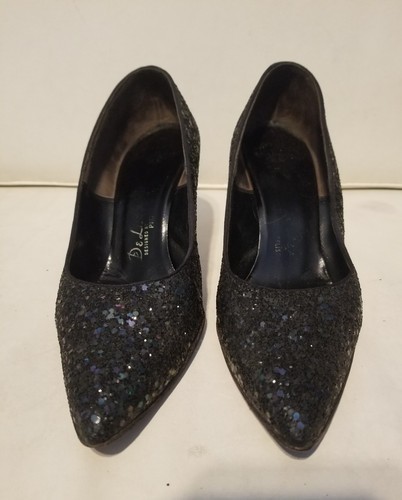 The De Liso Debs Palter Deliso Oilslick Glitter Pinup Rockabilly VLV 50s 60s Heels in size 7 are a vintage-inspired pair of pointed toe pumps with a mid heel height and stiletto heel style. They feature a glitter outsole material and lining made of leather, with a multicolor pattern and Pinup character. Perfect for formal occasions like weddings, parties, or cocktails, these heels embody the 60s rockabilly and Pinup style, making them a unique and stylish addition to any woman's shoe collection. These fit very true to a Modern 7! bOx2 I use recycled materials for packaging whenever possible. Please ask questions as all sales are final.