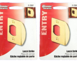 The Prime-Line E2307 deadlatch door strike plate provides reliable latching performance for residential interior and exterior doors. Made from 15/32-inch-thick steel with a brass-plated finish, this strike combines durability with a clean, contemporary look that blends seamlessly with standard door hardware. It features an adjustable tab that fine-tunes door alignment for smooth, quiet closure and secure engagement with the latch bolt. Measuring 2-1/4 inches in height by 1-7/16 inches in width, it fits standard door prep with a 1-5/8-inch hole-to-hole spacing and includes two No. 8 x 1-inch Phillips flat head screws for quick installation. Sold as a 2-pack on carded packaging, it?s an ideal replacement for worn or misaligned strikes in homes, apartments, or light-commercial settings.