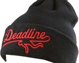 - Deadline Black Embroidered Sports Logo Folded Cuff Pom Beanie Winter Ski Hat NEW