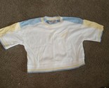 Deadstock Vintage 80's Bay Club Sweatshirt Crop top Short Sleeve White Blue Women's S This is nice crop top. Straight out of the 80's!! Literally. We got this from seized storage unit that had not been opened since 1990. Everything in this is old and from rich older single lady This seems a bit musty and may need washing. Measurements - 17 inches across the chest pit to pit 17 inches long 5 inches arm pit to cuff FREE SHIP