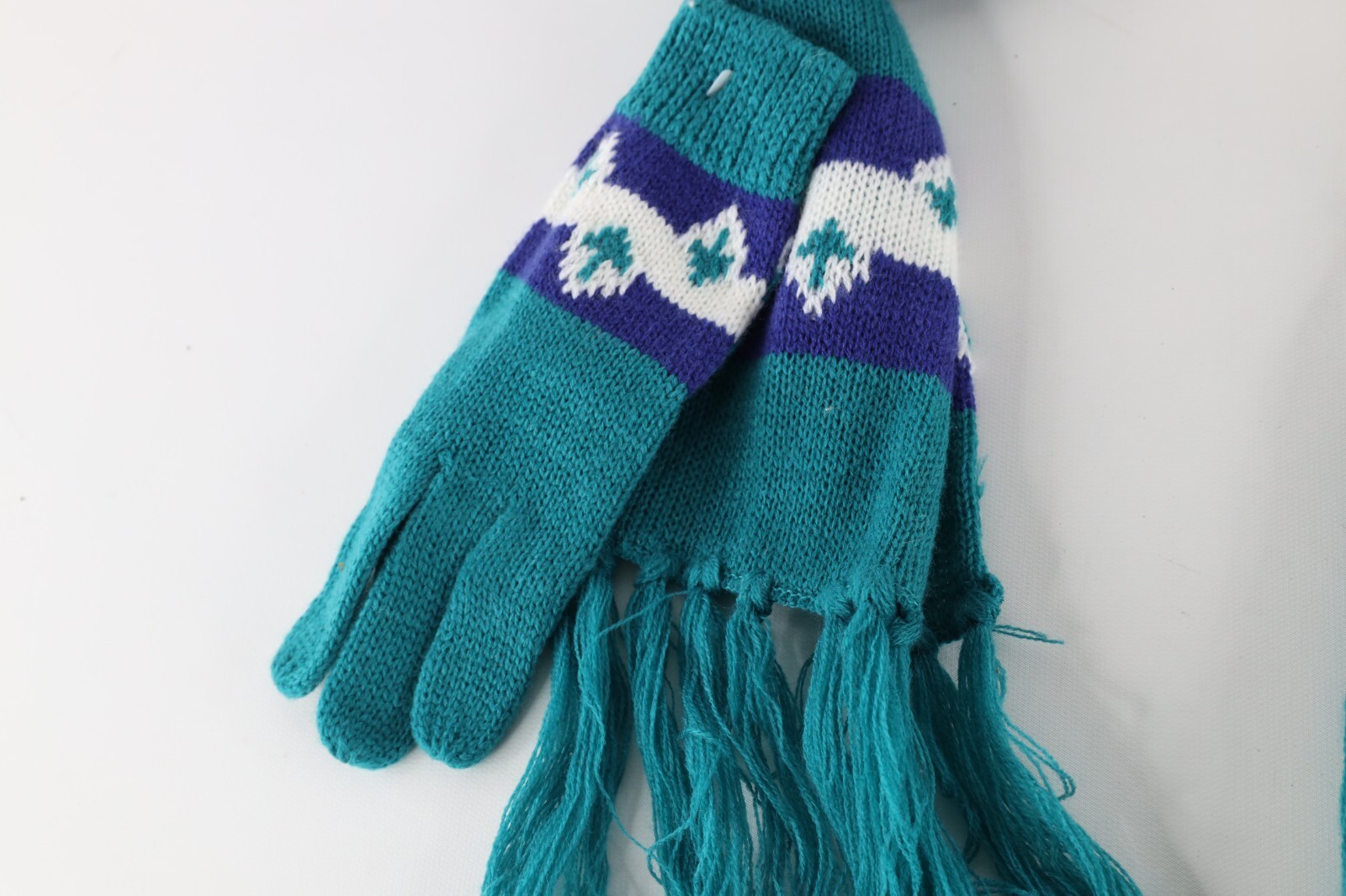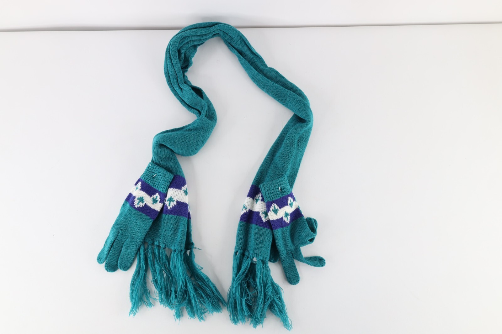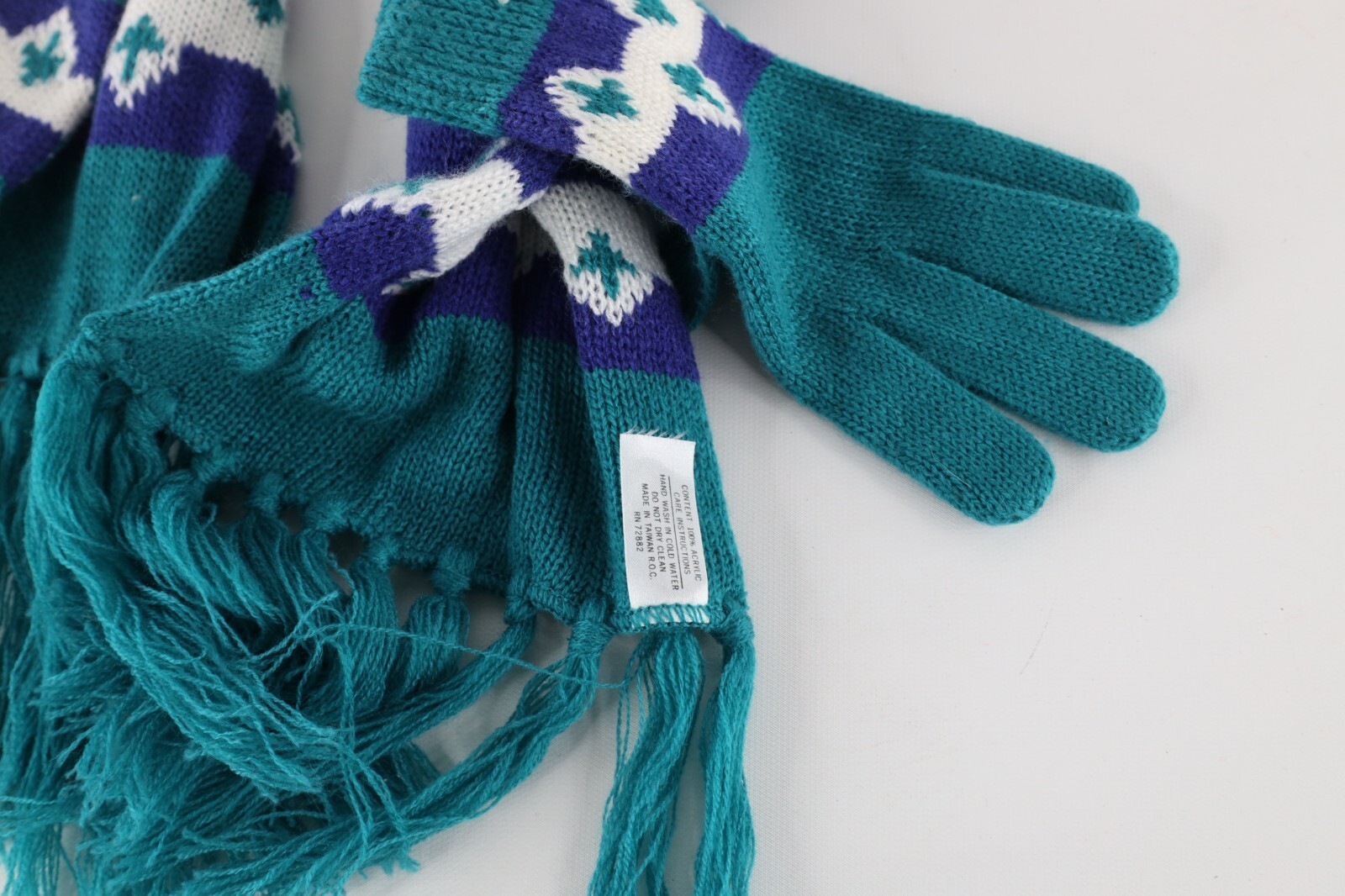 - Deadstock Vintage 90s Streetwear 2 Piece Knit Fair Isle Scarf Gloves Winter