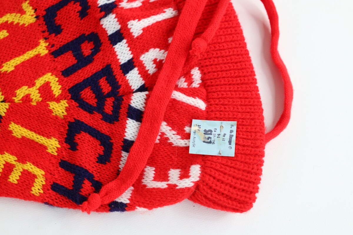 Deadstock Vtg 70s Streetwear Child Youth Letter Numbers Winter Beanie Hat USA