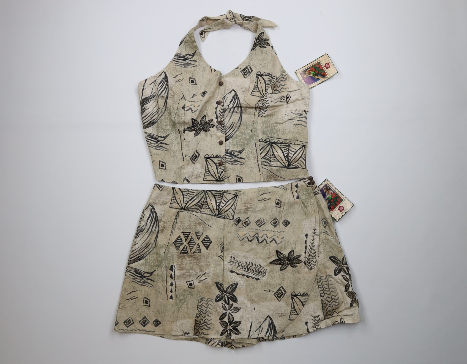 - Deadstock Vtg 90s Hilo Hattie Womens XL 2 Piece Hawaiian Skort Halter Top USA