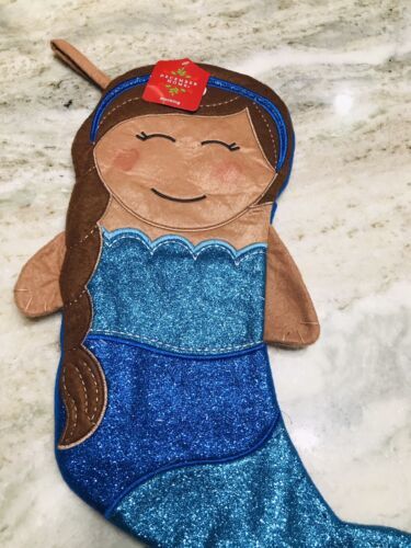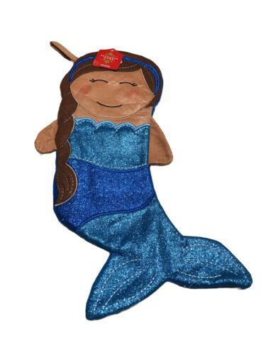 - December Home Christmas Winter Holiday Blue Glittered Mermaid Stocking:18”