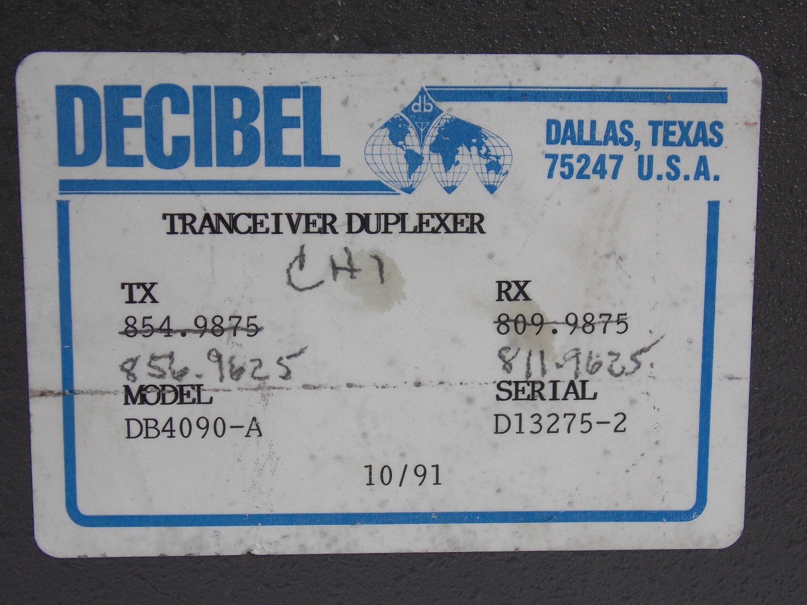 - DECIBEL PRODUCTS DUPLEXER DB4090-A UNTESTED PARTS ONLY