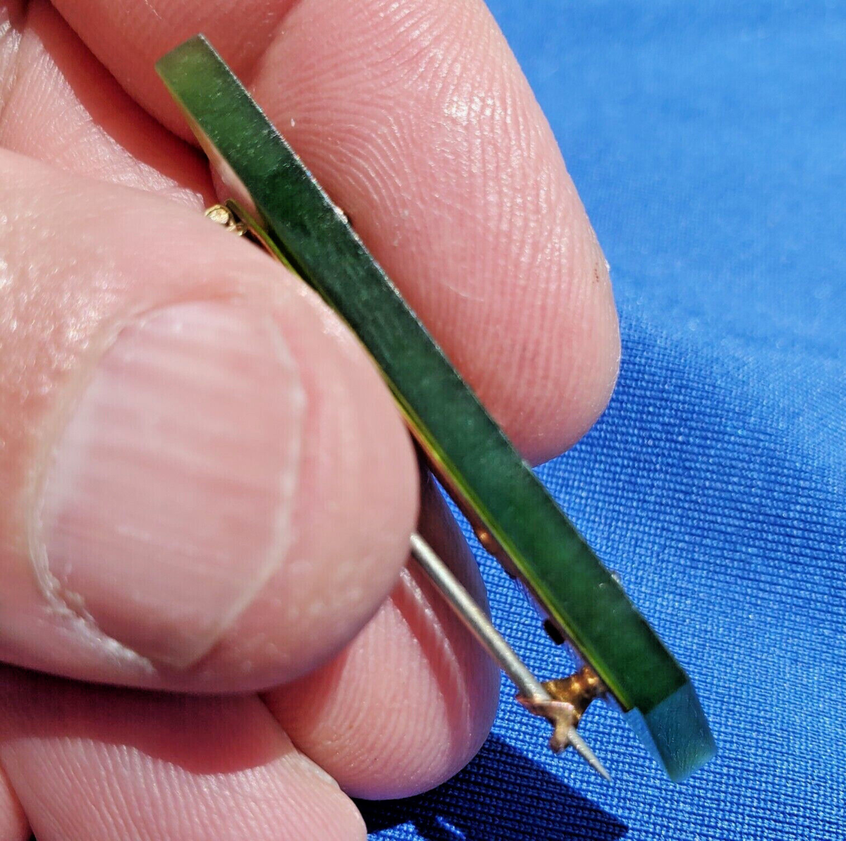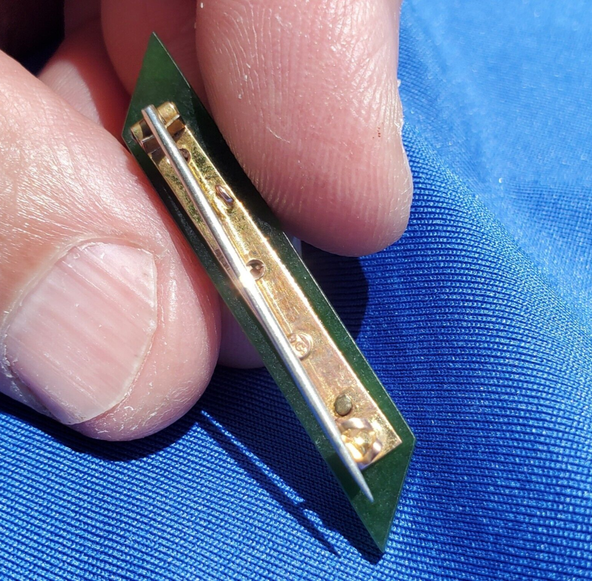 - Deco Jade Diamond Bar Pin 9k Gold Elegant Antique Sophisticated Victorian Brooch