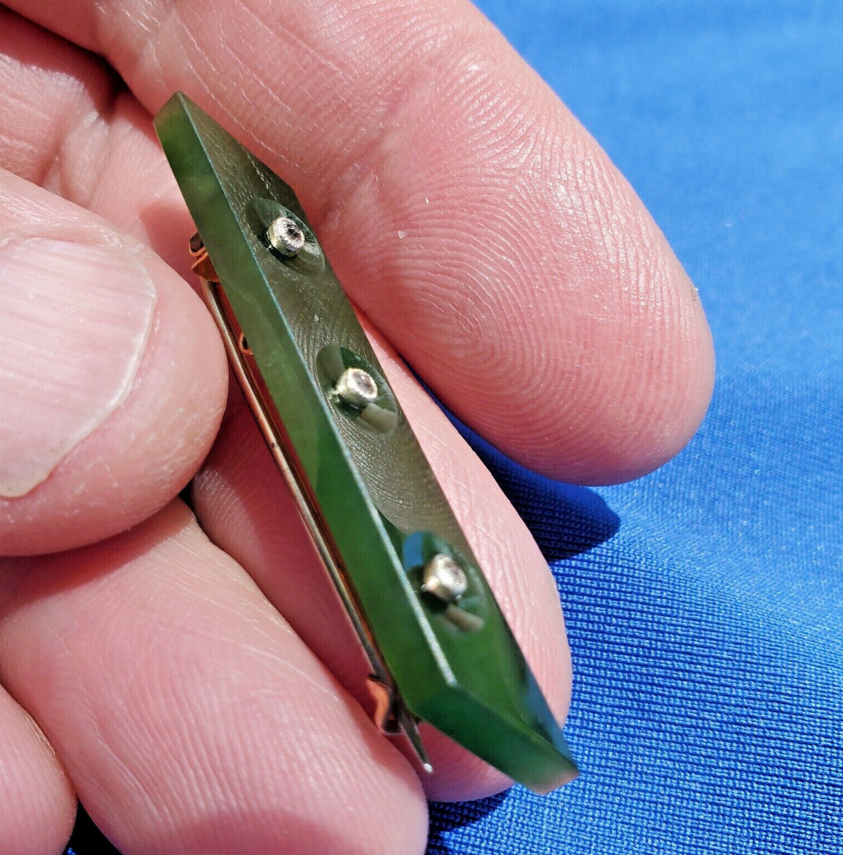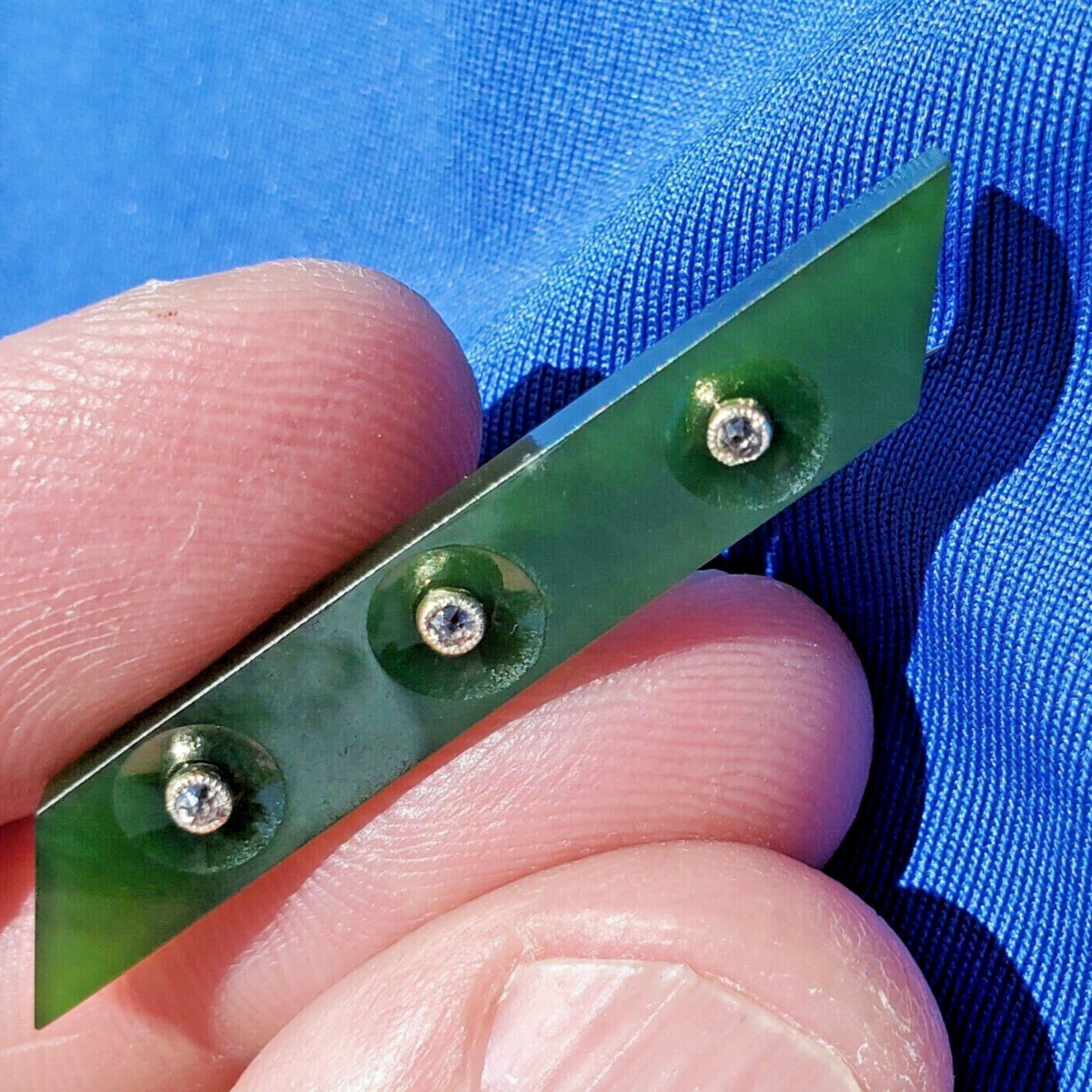 Deco Jade Diamond Bar Pin 9k Gold Elegant Antique Sophisticated Victorian Brooch