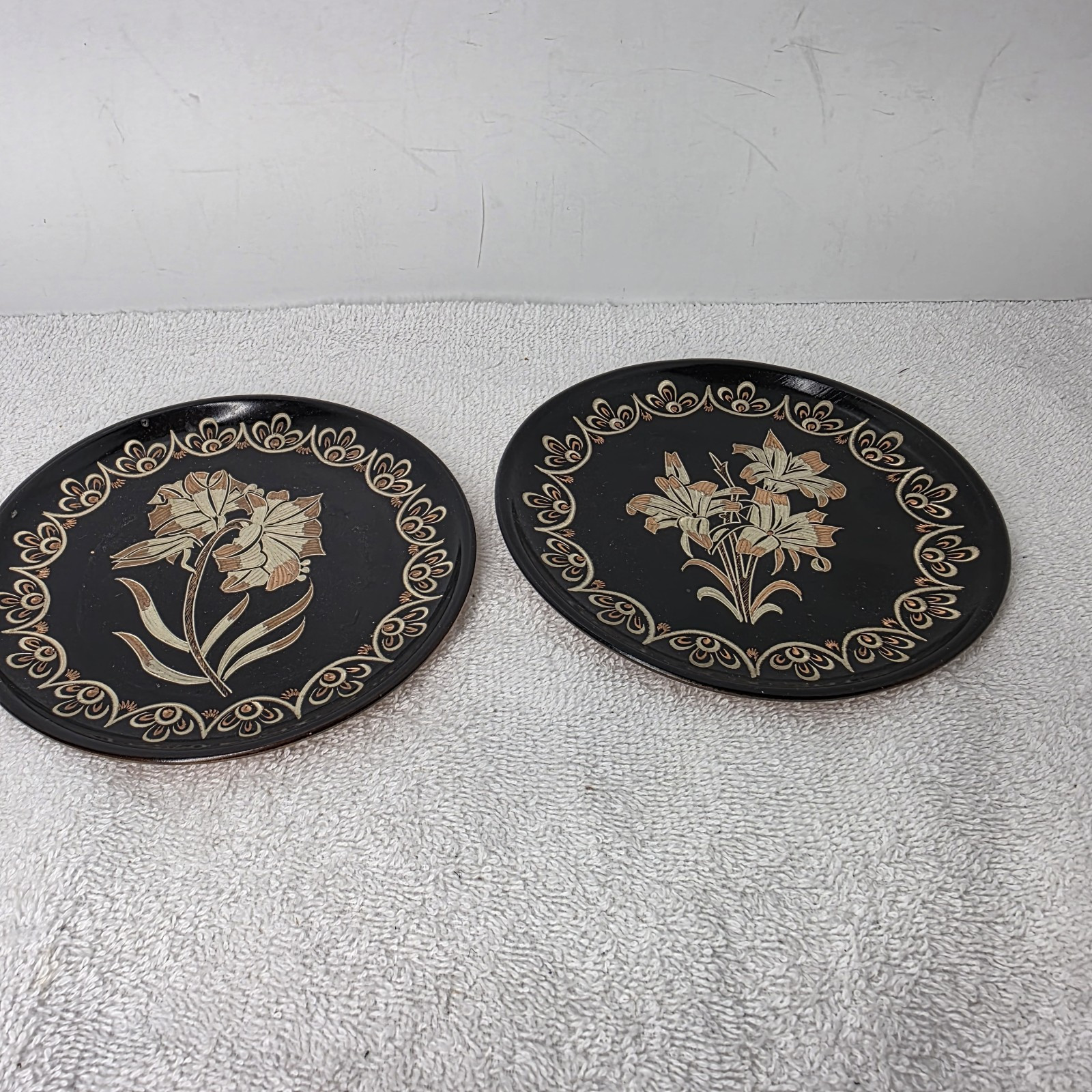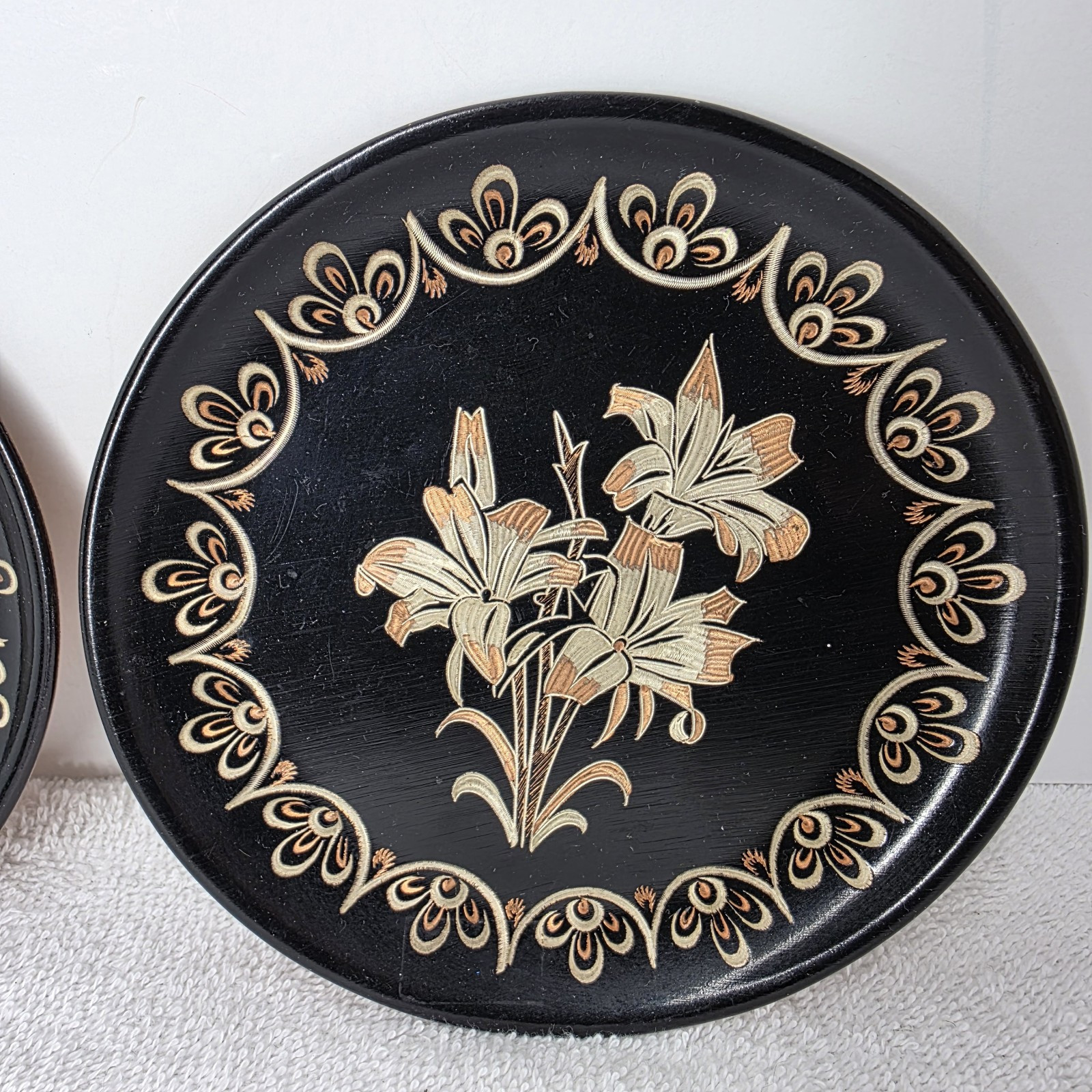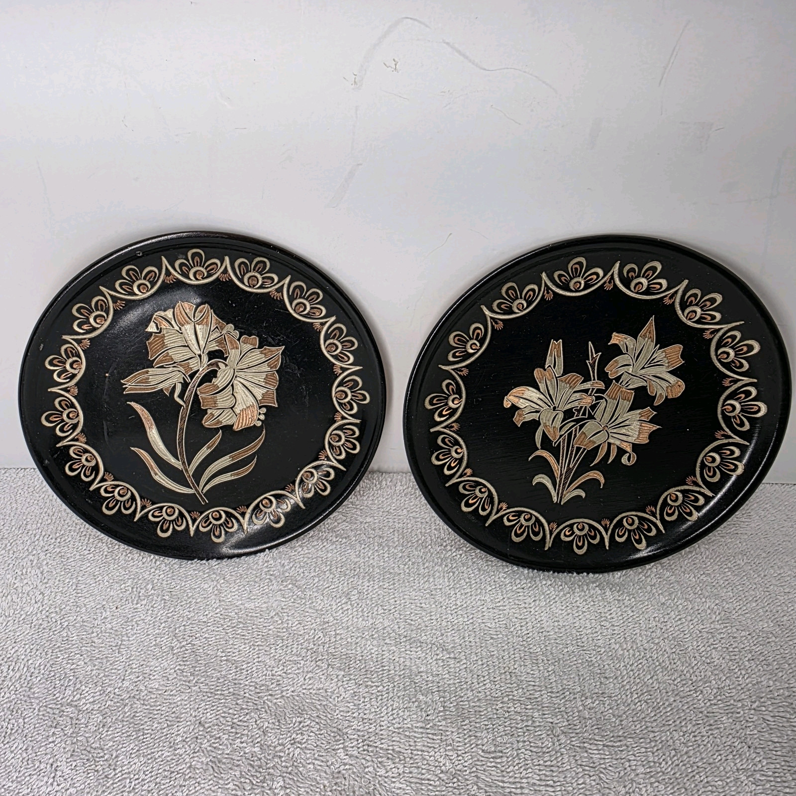 - Decorative Plates Black Copper Wall Hanging Japanese Floral Art Decor 5½"