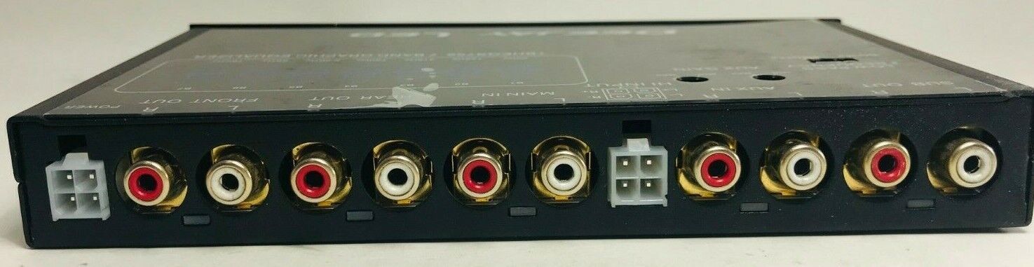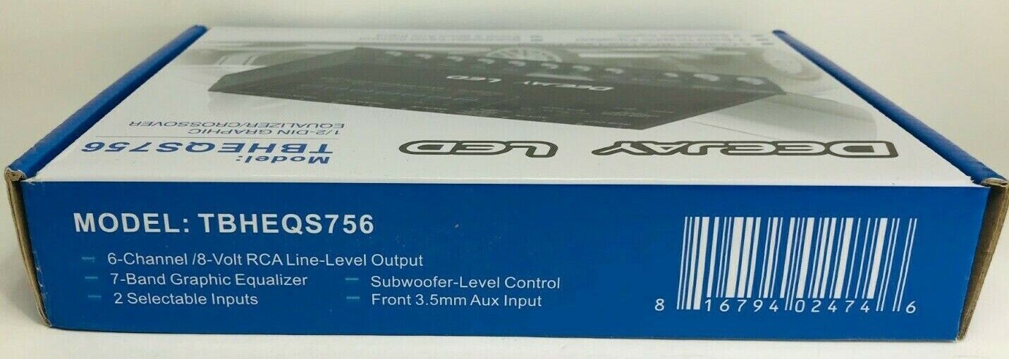 Brand NEW! 7-band stereo equalizer/crossover specifically created for the mobile environment. The EQS755 provides powerful features in a compact size: * Seven equalization bands (50Hz, 125Hz, 315Hz, 750 Hz, 2.2KHz, 6kHz, and 16 kHz), each frequency adjustable from -12 to ,+12dB (- 15 to +15dBfor subwoofer frequencies). * Subwoofer output uses a built-in 18dB per octave electronic crossover fixed at 60Hz or 90Hz. * Three stereo RCAoutputs to drive front, rear, and subwoofer audio amplifiers. * An auxiliary stereo RCAinput for use with portable devices, such as an MP3 player or DVDplayer. * Front panel auxiliary stereo 3.5mm input for the convenient use of your phone or favorite media player. * Separate controls for master volume, subwoofervolume (sub level), frontlrearfader, and selection of main or auxiliary inputs. * Extended frequency response from 20 Hzto 30 kHz with exceptional 100 dB signal-tonoise performance. * Gold-plated RCAconnectors to ensure the best audio signal output. * ISO mounting holes and removable trim ring for custom installation. * High Level speaker input for integration with factory radios - All international buyers are responsible for all tax, duties and/or customs fees.