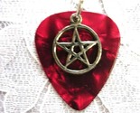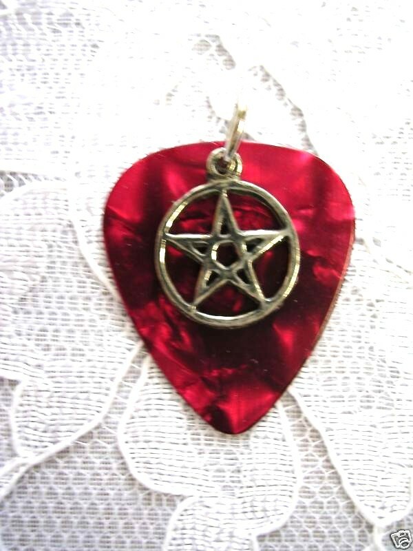 - DEEP BLOOD RED CELLULOID GUITAR PICK w 5 POINT PENTACLE STAR PENDANT NECKLACE