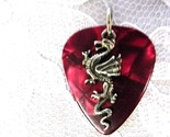 - DEEP BLOOD RED GUITAR PICK and PEWTER CLASSIC DRAGON CHARM PENDANT NECKLACE