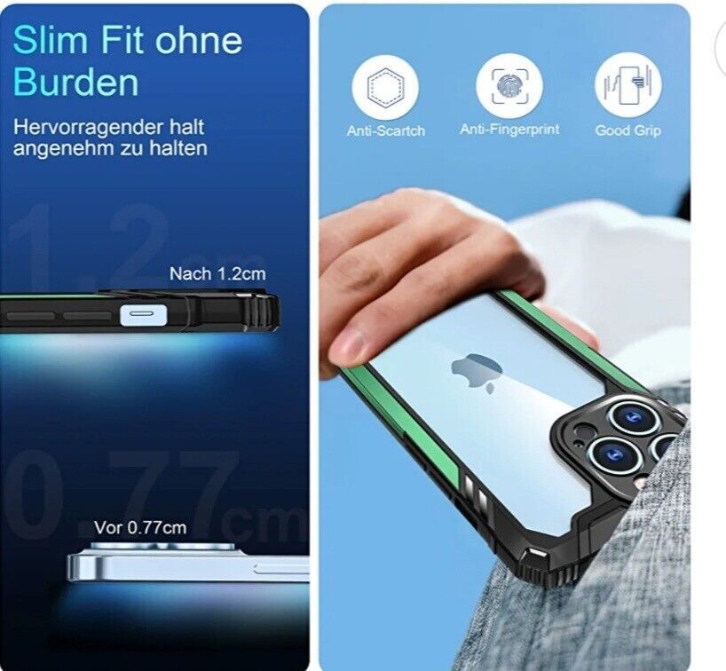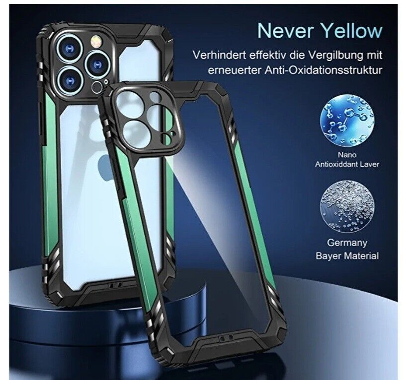 Amytor Defender Designed for 13 Pro Max Case, [Not Yellowing] [Military Drop Protection] Shockproof Slim Thin Non-Slip Cover 6.7 Inch (Green)