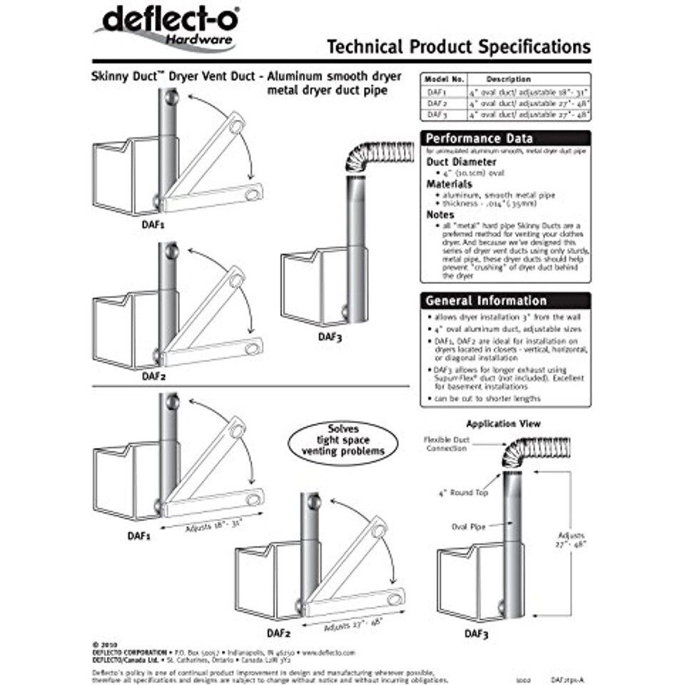 This fire resistant, aluminum oval duct by Deflecto is adjustable and can be cut to shorter lengths. Allowing dryer venting installation as little as 3" from the wall, it can be installed vertically, horizontally, or diagonally. Made with sturdy metal that prevents the duct from smashing behind the dryer. Skinny ducts are ideal for venting your dryer safely and accurately in closed spaces such as closets. Deflecto keeps you in mind for a better venting and installation experience.