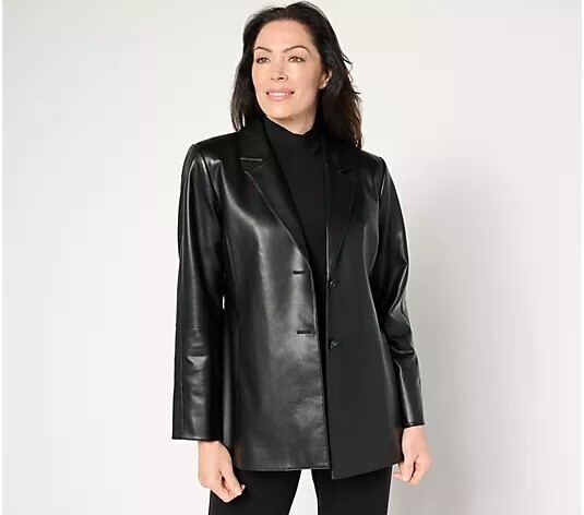 Dennis by Dennis Basso Size Large Regular Women's Relaxed Fit Faux Leather Jacket Black -Notes: Fabrication: woven Features: two center-front buttons, on-seam pockets, notch collar, center-back seam Fit: relaxed; generously cut with maximum wearing ease Content: face 100% polyurethane; backing 100% rayon; lining 100% polyester Care: machine wash cold, line dry IF THE ITEM IS NOT TO YOUR EXPECTATION WE OFFER A 30 DAY RETURN POLICY. SHIPPING: Items are in stock and ready to ship. We have a 1 day handling time but will usually ship same day if you purchase before 3PM Central Standard Time International Buyers Please Note: Import duties, taxes, and charges are not included in the item price or shipping cost. These charges are the buyer's responsibility. Please check with your country's customs office to determine what these additional costs will be prior to bidding or buying. QUESTIONS? Message us- we are usually very fast at responding! Listing and template services provided by inkFrog