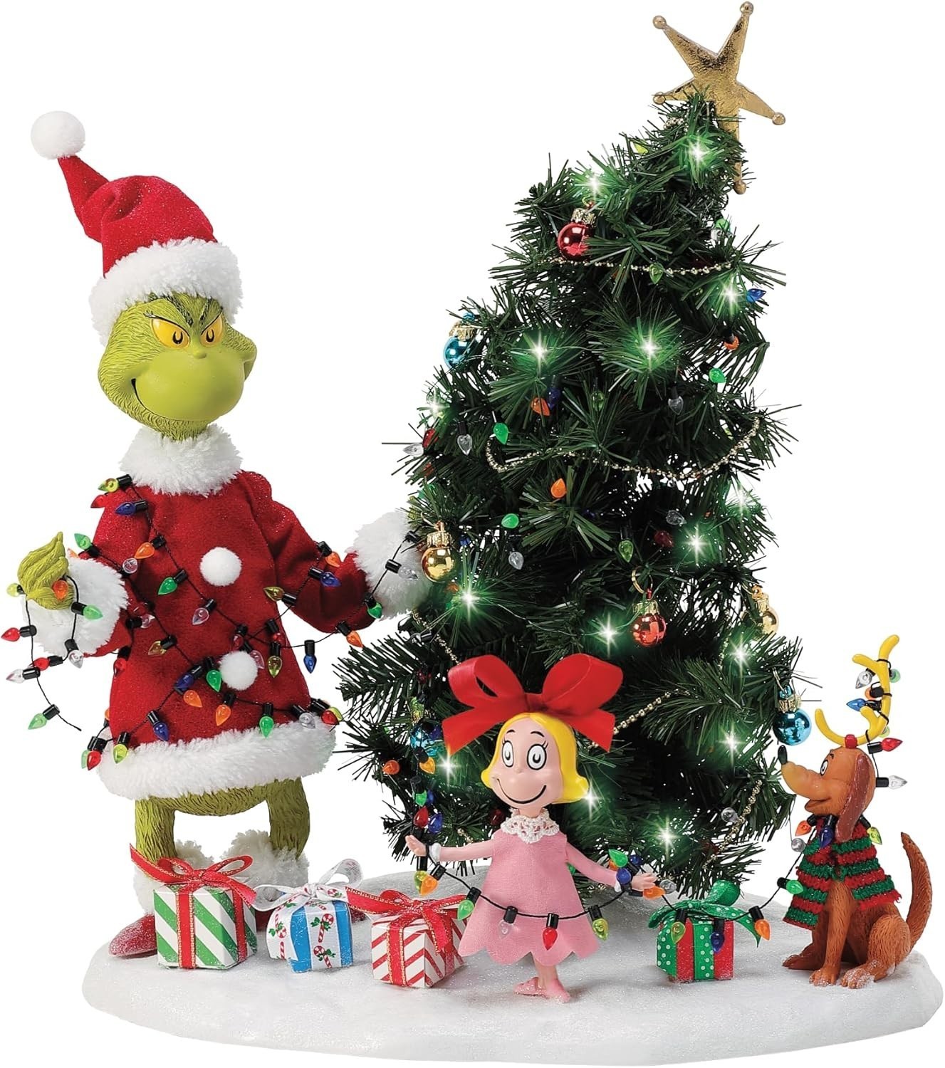 DEPARTMENT 56 LIT FIGURINE: from the Possible Dreams Dr. Seuss the Grinch collection, designed by Ann Dezendorf and fully licensed HAND-CRAFTED: from high-quality resin material plus our signature stiffened Clothtique fabric HAND-PAINTED: details are intricately applied by skilled artisans PACKAGING: includes a gift box DIMENSIONS: 12" L x 8.5" W x 14" H