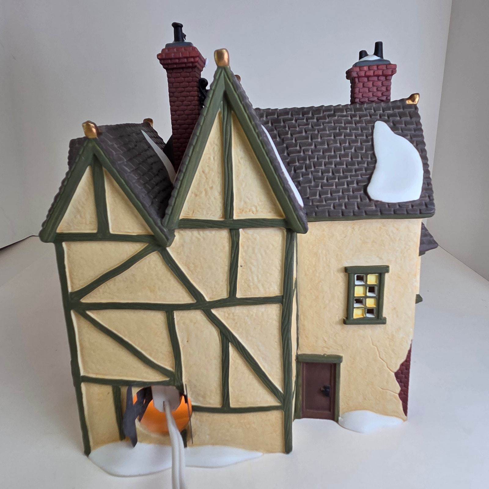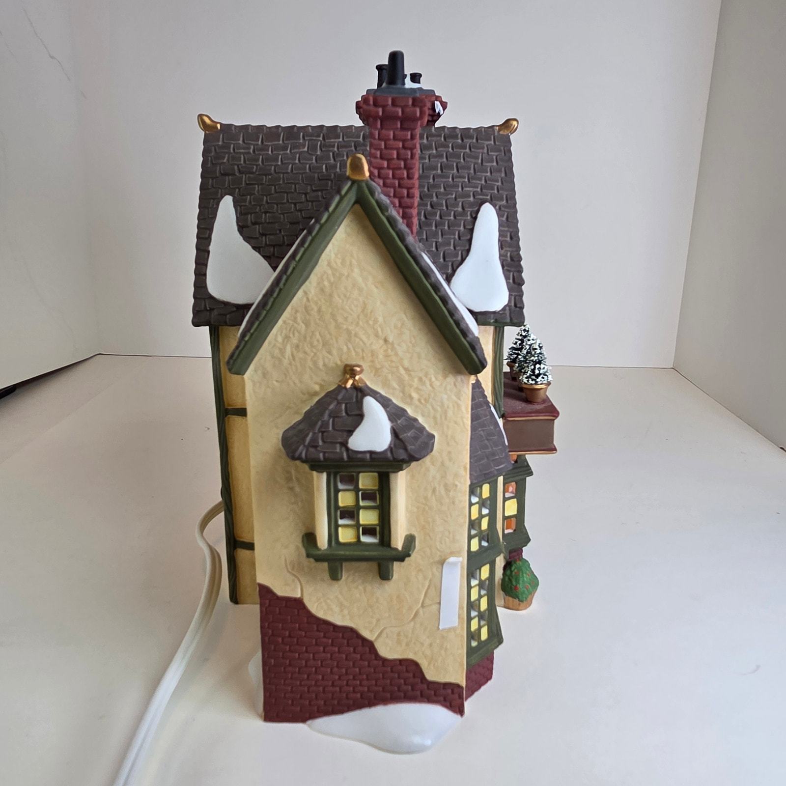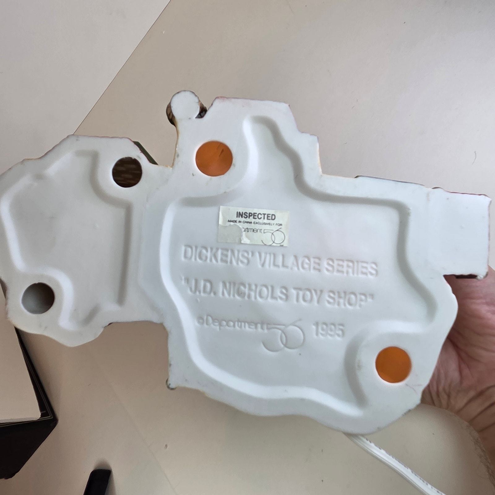 Add Victorian charm to your holiday village with this JD Nichols Toy Shop from the Dickens' Village Series by Department 56. This lighted ceramic building features colorful detailing, frosted windowpanes, and classic 19th-century architecture. Comes in the original box with styrofoam insert for safe storage or gifting. Series: Dickens' Village Series Model: JD Nichols Toy Shop Material: Porcelain / ceramic with hand-painted details Year Introduced: 1994 Includes: Lighted building, cord, original box and styrofoam Dimensions: Approx. 6.5? tall x 5.25? wide x 4? deep Condition: Excellent pre-owned condition; light tested and working. Box shows minor wear from storage.