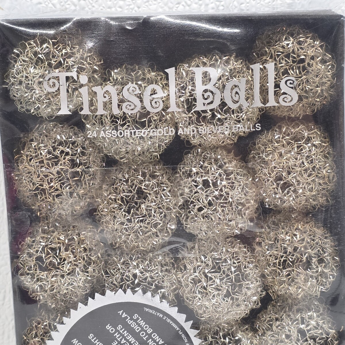 Dept. 56 Vintage Christmas Holiday 24 Silver Gold Tinsel Balls. Images show actual item that will ship.