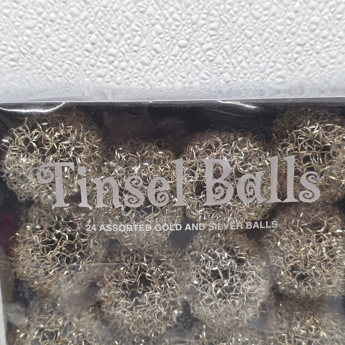 - Dept. 56 Vintage Christmas Holiday 24 Silver & Gold Tinsel Balls