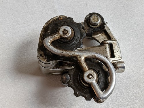 In vendita e un deragliatore posteriore Shimano Dura Ace Crane vintage usato.