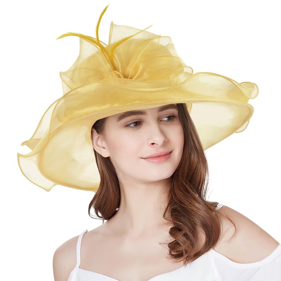 - Derby Hats Women Organza Kentucky Fascinator UV Protection Sun Hat