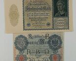 Deutschland 2-Notes 1910 Deutsche Reich 20 Marke 1922 Weimar Republik 10000