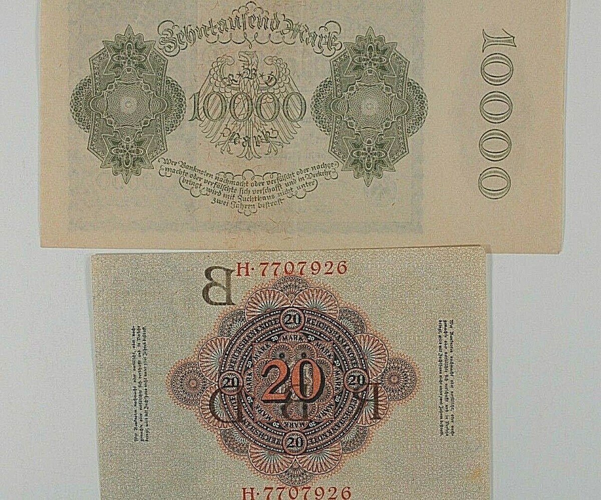 Deutschland 2-Notes // 1910 Deutsches Reich 20 Mark 1922 Weimar Republic 10000 Marke