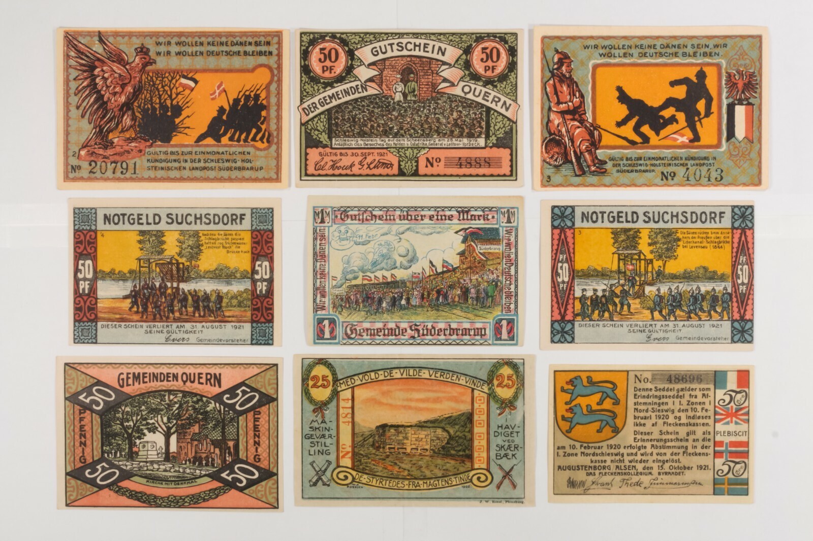 Deutschland Volksabstimmung Notgeldscheine. Grenzstreit zwischen Deutschland und Danemark. 25-Noten-Lot.