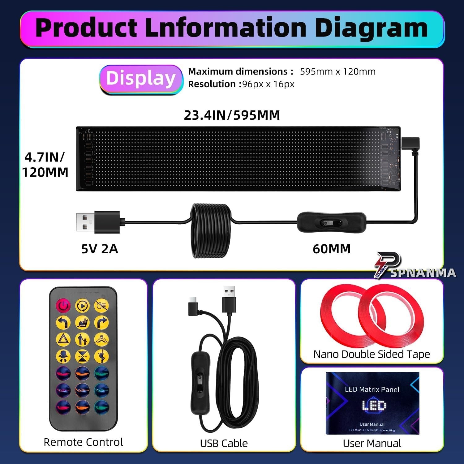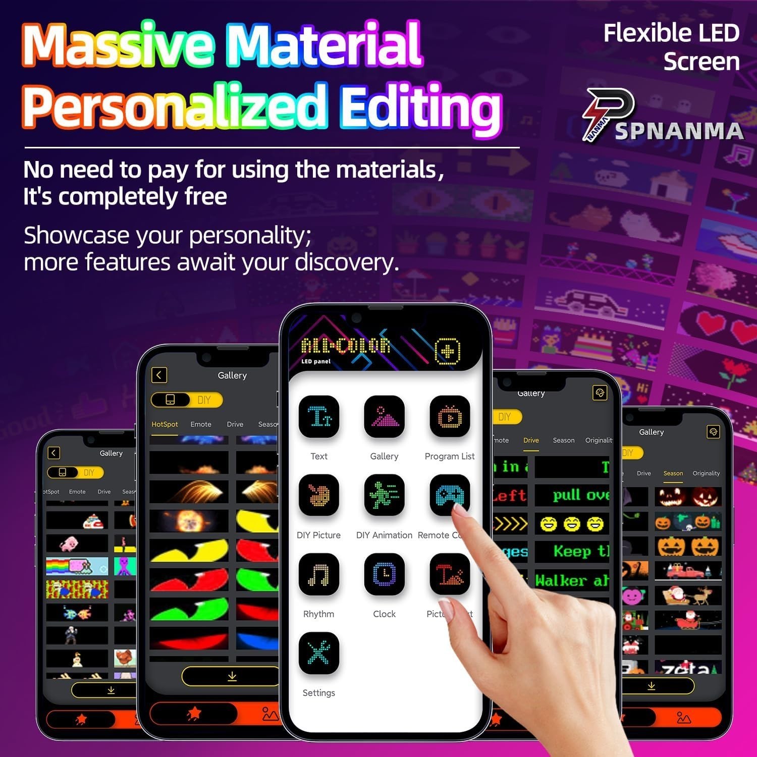 Easily create custom designs using the iPixel Color App or the included remote control. Upload text, emojis, animations, or even GIFs to your animated LED car sign. The app supports directional effects, music