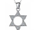 Diamond Jüdischer Star des David -Anhangers Rolo Halskette 16 "14K Weißgold 0,34 ct