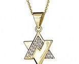 Diamantstar Magen David Jüdische Anhanger Halskette 16 "14K Gelbgold 0,21 ct