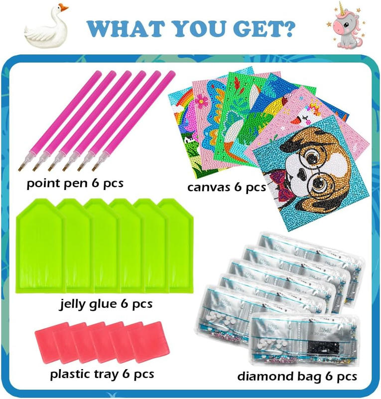 Size information : Our diamond art kits sizes of each canvases: 6 x 6 inches. Proper sizes for kids and beginners who are interested in DIY projects for arts and crafts, easy to DIY within a little time.