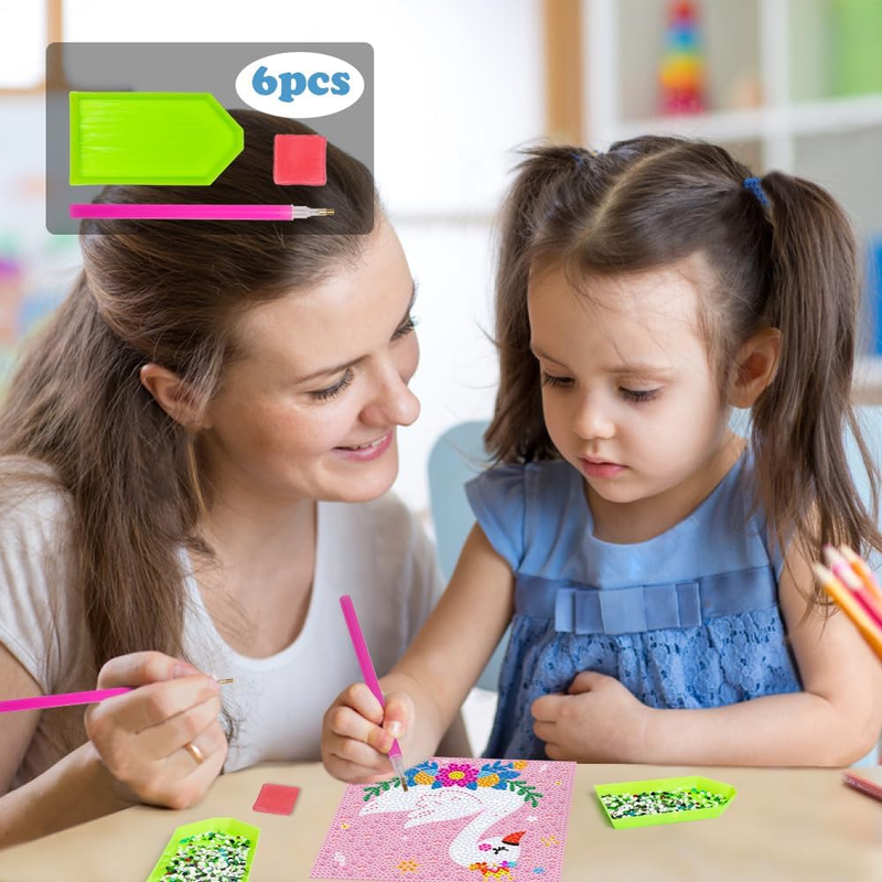 Play with Fun :Our diamond art kits for kids set 4 pcs point drill pen, tray and mud. So that Adults can work with your children to complete this creation and experience the fun of parent-child interaction.