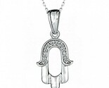 - Diamond Hamsa Hand Pendant Jewish Necklace 16" 14k White Gold 0.19 CT