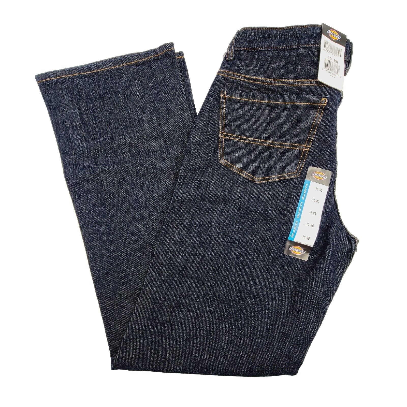 Elevate your wardrobe with these stylish bootcut jeans from Dickies. Featuring a solid pattern, zip closure and mid-rise fit, these jeans are perfect for any occasion. Made with high-quality cotton denim fabric wash, these jeans are durable and machine washable for easy care. The blue color and logo accents add a modern touch to this classic workwear piece. These jeans are available in women's size 10 with a waist size of 34 inches and inseam of 33 inches. Dickies is a well-known brand and these jeans are made in Mexico. Perfect for streetwear, grunge or just everyday wear.