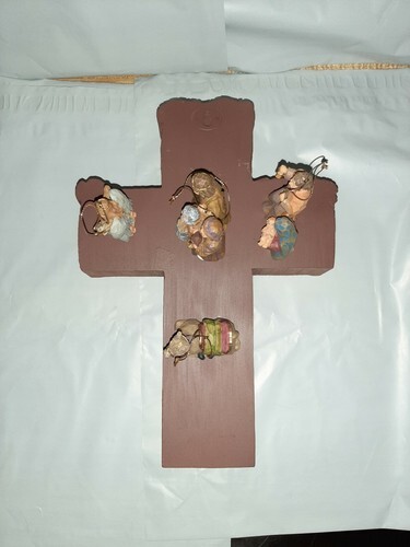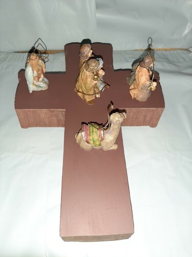 Dicksons Nativity Wall hanging Cross with Christmas ornaments 8.25 X 12 Resin