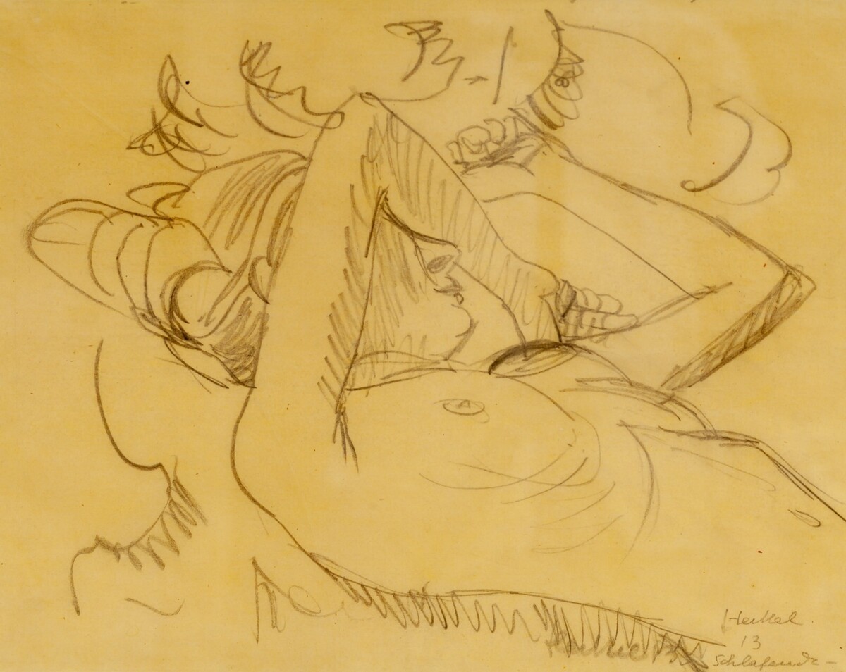 Schizzo originale a matita "Die Schlafende". di Erich Heckel on pergamena 24 x 21 pollici Firmata