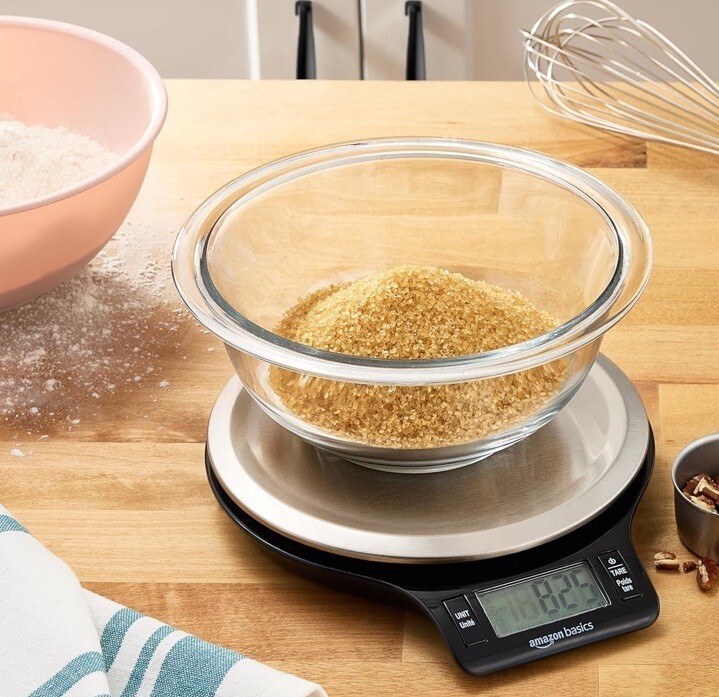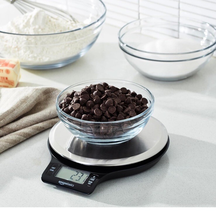 The Digital Kitchen Scale with LCD Display is a sleek and accurate tool for measuring food in the kitchen. With a weight capacity of up to 11 pounds, it features a black and stainless steel design that looks modern and durable. The inclusion of batteries and its compact size make it convenient for on-the-go use, while its digital display and 1 gram accuracy ensure precise measurements for all your cooking needs. Perfect for home use, this Amazon Basics scale is a reliable and efficient addition to any kitchen.
