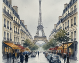 On a rainy, overcast day in Paris, the Eiffel Tower rises dramatically in the center of a charming street scene, framed perfectly between rows of trees and vintage buildings. The wet pavement glistens under the soft drizzle as people walk both toward and away from the tower, clutching colorful umbrellas that add a splash of life to the muted tones of the cloudy sky. Along the street, classic vintage cars are parked near quaint shops nestled beneath leafy trees, their warm glow inviting passersby to take shelter. The iconic iron lattice of the tower looms in the distance, anchoring the scene with timeless elegance amid the gentle bustle of Parisian life. Resolution: 300 DPI PNG Downloadable file ------------------------------------------------------------------------------ IMPORTANT NOTE: Please keep in mind that this artwork will be available as a digital download. RETURNS, CANCELLATIONS EXCHANGES โ€ข Returns, exchanges, and cancellations are not permitted for instant download products. DELIVERY โ€ข Download in seconds โ€ข Once payment is received, your files will be made available for download. For any questions or concerns, please reach out to our Customer Service Team at sales.digitimmerse@gmail.com