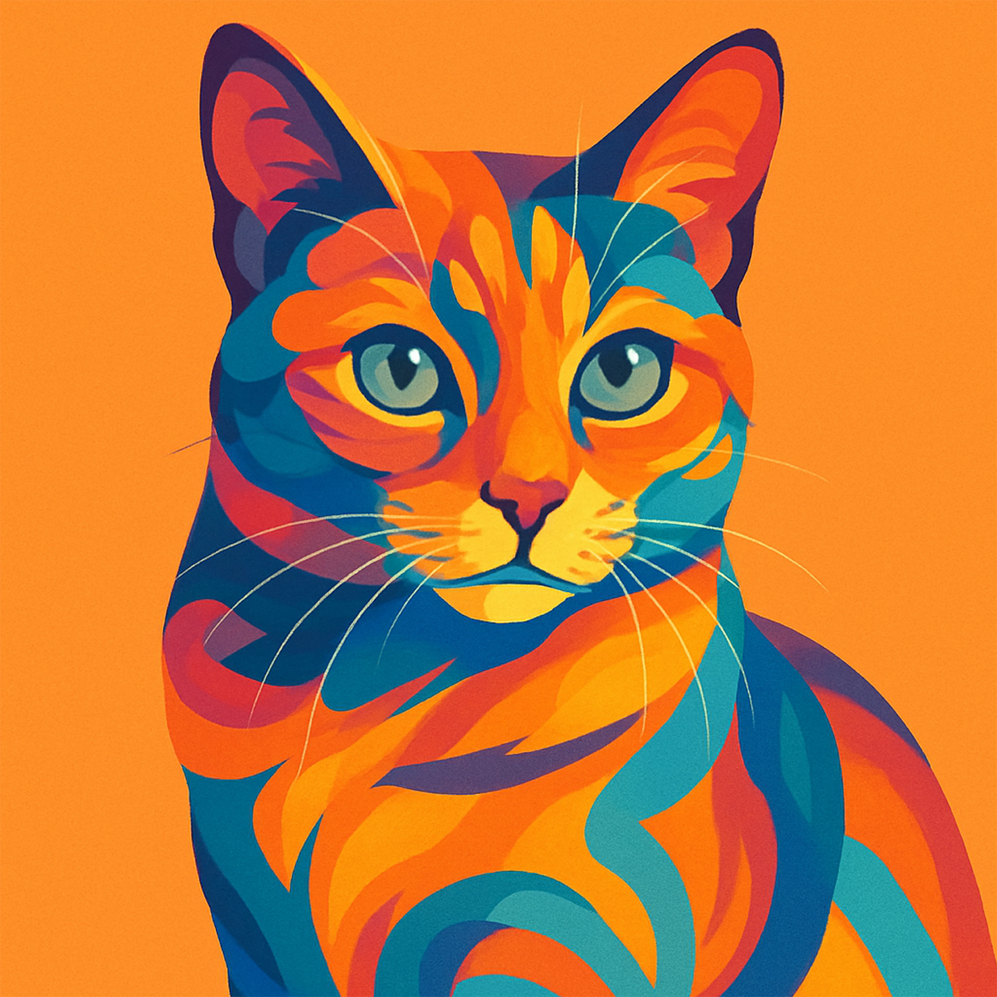 “Pop Art Prowler” is a stylized portrait of a cat. It is vibrant and stylized, rendered boldly and vividly, matching the modern pop art aesthetic. It is coated in colors unusual for a cat, suggesting an abstract design. The cat is covered in blue, purple, orange, and yellow fur with an orange background that helps with emphasizing the subject. These choices of color on the subject makes him stand out. The pop art aesthetic reflects with this piece’s loud and bold feel. “Pop Art Prowler” portrays the cat’s energetic and confident personality. Resolution: 300 DPI PNG Downloadable file ------------------------------------------------------------------------------ IMPORTANT NOTE: Please keep in mind that this artwork will be available as a digital download. RETURNS, CANCELLATIONS EXCHANGES • Returns, exchanges, and cancellations are not permitted for instant download products. DELIVERY • Download in seconds • Once payment is received, your files will be made available for download. For any questions or concerns, please reach out to our Customer Service Team at sales.digitimmerse@gmail.com