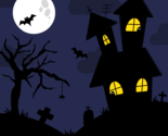 This is a simple, cartoon-style illustration of a Halloween night. A bright full moon and a flying bat are set against a dark blue sky with a few clouds. In the foreground, there's a spooky haunted house silhouette with glowing yellow windows. A bare, twisted tree with a hanging spider and some gravestones complete the eerie scene. Resolution: 300 DPI PNG Downloadable file ------------------------------------------------------------------------------ IMPORTANT NOTE: Please keep in mind that this artwork will be available as a digital download. RETURNS, CANCELLATIONS EXCHANGES โ€ข Returns, exchanges, and cancellations are not permitted for instant download products. DELIVERY โ€ข Download in seconds โ€ข Once payment is received, your files will be made available for download. For any questions or concerns, please reach out to our Customer Service Team at sales.digitimmerse@gmail.com