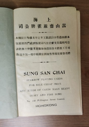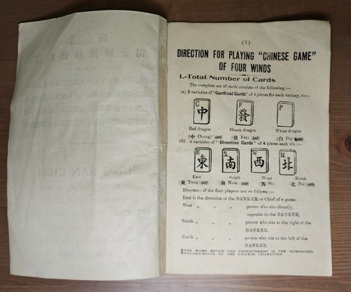Directions of Playing CHINESE GAME OF FOUR WINDS Sung San Cahi Hongkong 1920s