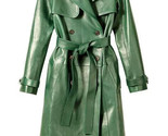 Diseñador Elegante Verde Mujeres Piel de Cordero Largo Gabardina Invierno Fiesta